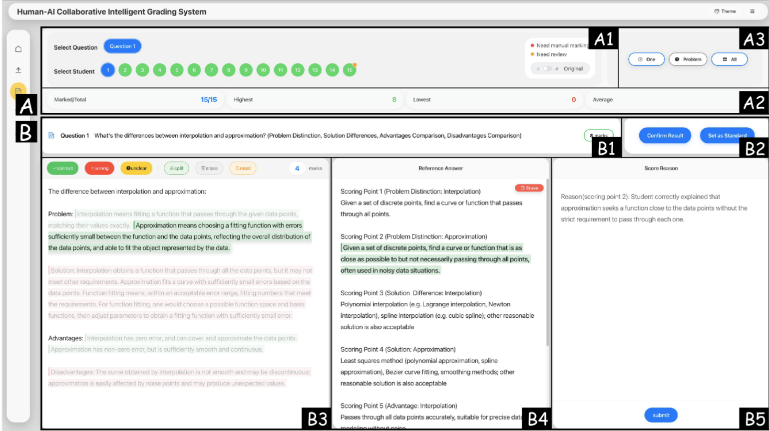 Open-ended Structured Question Assessment with Human-LLM Collaboration